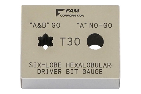 トルクスねじ、ヘックスローブ付きねじ、ヘクサロビュラ穴付きボルトを検証するための、ヘクサロビュラゲージです。 日本工業規格(JIS B 1015)、日本自動車規格(JASO F 116-2019)、及び、国際標準化機構の規格(ISO 10664)に準じております。