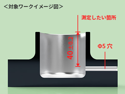 端面から穴までの距離40mmに振れがあり困っています。 加工完了後、三次元測定機で測定中に発覚するので、 加工機上に載せたままでも簡単に穴の位置を測定できるような良い